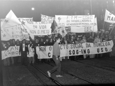 O 25 de outubro de 1977, en pleno proceso de cambio do réxime ditatorial franquista a un réxime de democracia burguesa, tiña lugar o asinamento dos Pactos da Moncloa entre o Goberno de Estado e as principais forzas políticas da dereita e da esquerda española con representación parlamentaria, e que finalmente contou co apoio das forzas sindicais españolas, CCOO e UGT.