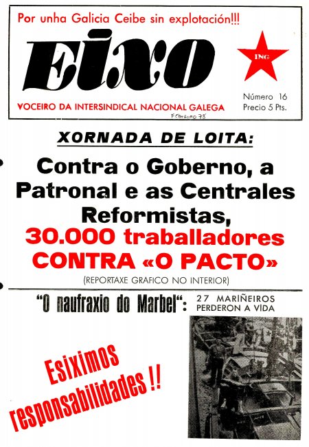 Exemplar do 'EIXO', voceiro da ING, no que se aborda a Xornada de Loita contra o Pacto da Moncloa e a Xornada de Loita, febreiro de 1978