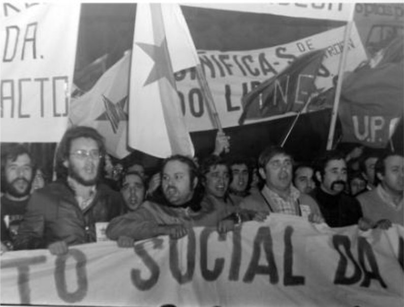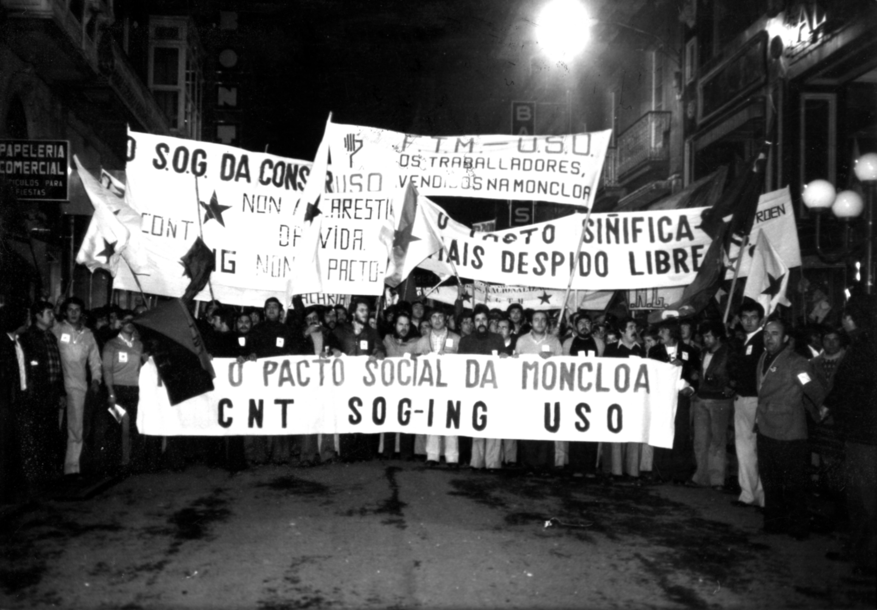 “Hai poucas dúbidas de que o asinamento en outubro de 1977 do Pacto da Moncloa por parte de todos os partidos parlamentares representa un punto de inflexión na traxectoria do sindicalismo no noso país. Resolta a transición política a prol das clases e sectores que sostiveron o franquismo, o seguinte obxectivo da burguesía foi impoñer a política económica e social que conviña aos seus intereses históricos, xusto nuns intres moi complicados. Por unha banda, o capitalismo estaba sumido nunha crise xeneralizada que atinxiu con particular crueza á economía española… por outro lado, a forza reivindicativa do Movemento Obreiro era enorme, entre outros motivos, polo alto grao de mobilización social que se alcanzou na loita final contra a Ditadura.