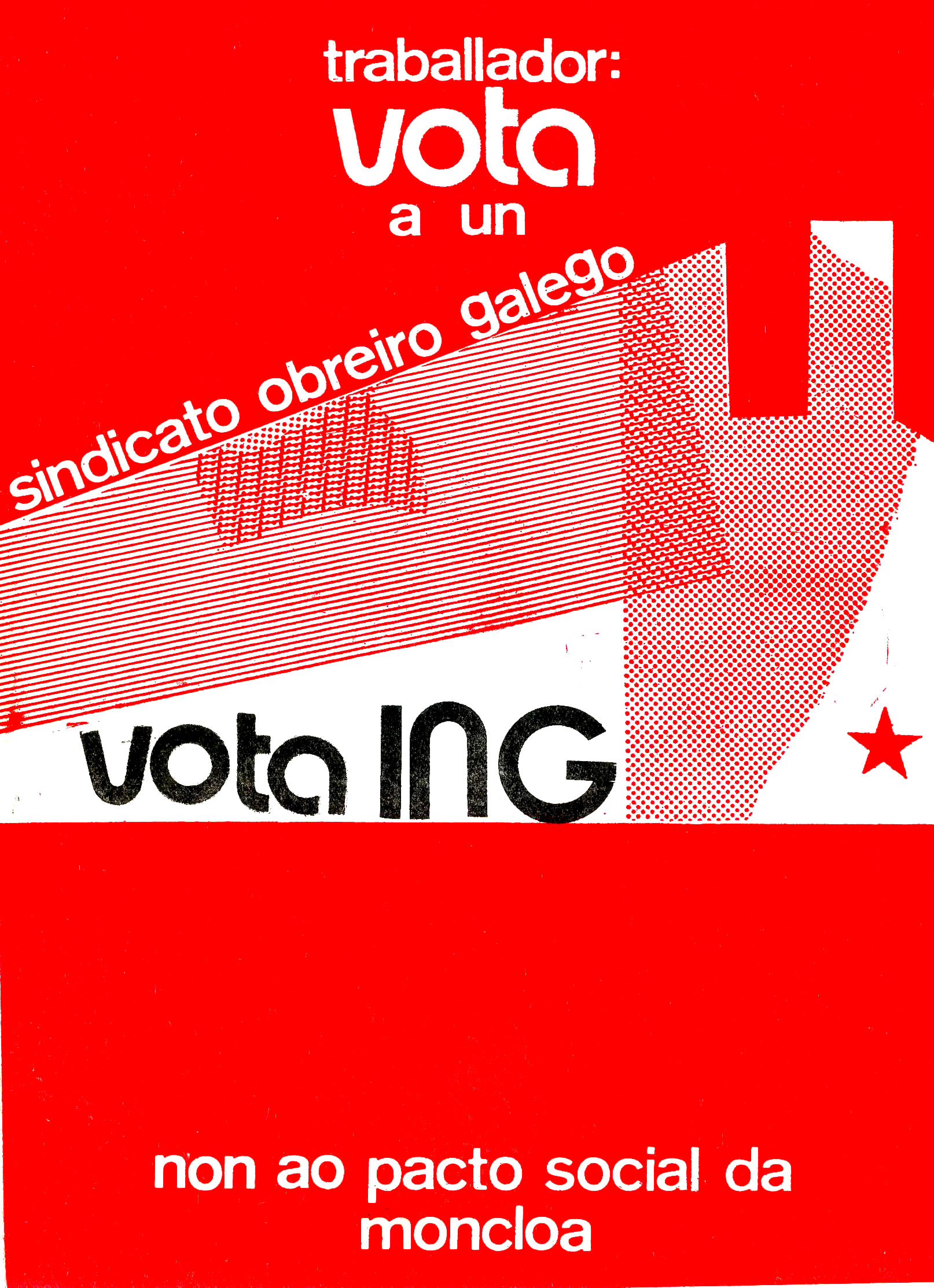Nun panfleto a ING convocaba cos seguintes argumentos: “compañeiros, o Goberno, os patróns e as centrais sindicais CCOO e UGT puxéronse de acordo e esfórzanse por desviar a nosa atención no momento de aplicar os acordos da Moncloa, e así, xusto cando temos que cobrar a primeira paga á que se lle vai aplicar o pacto. Cando cobremos a de xaneiro tratarán de ternos ocupados coas eleccións. Por iso, ademais de preocupármonos polas eleccións sindicais debemos defender debidamente os nosos intereses”.