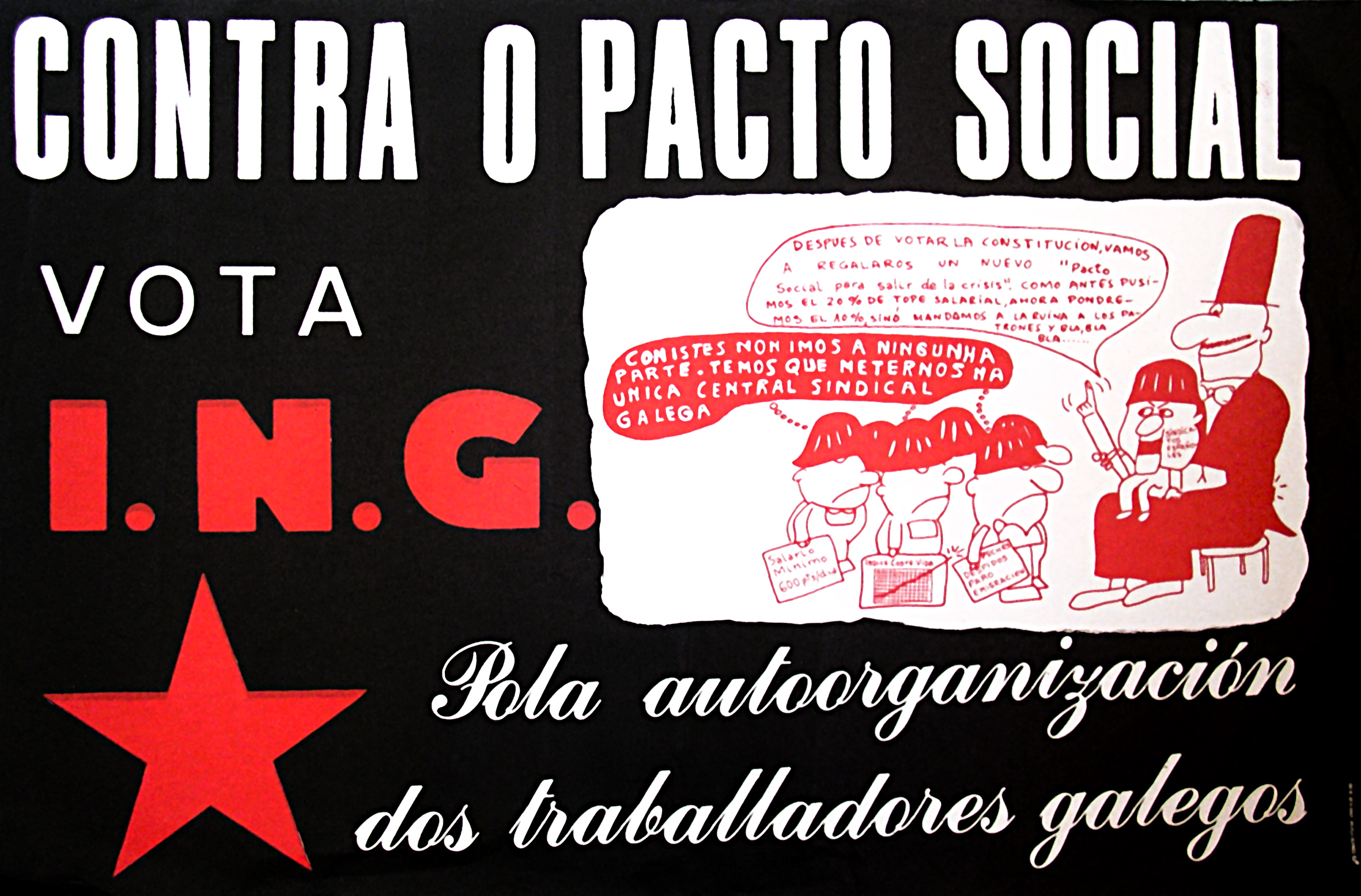 O Pacto social foi o centro do debate entre as centrais nas primeiras eleccións sindicais celebradas con liberdade, nos primeiros meses de 1978 . O cartaz da ING ía ao miolo, “Non ao pacto social da Moncloa”, como única consigna. Non incidiron tanto como para dar un cambio radical na correlación de forzas, porén consolidou a ING como terceira organización sindical. Foi deste xeito cando menos por tres razóns: